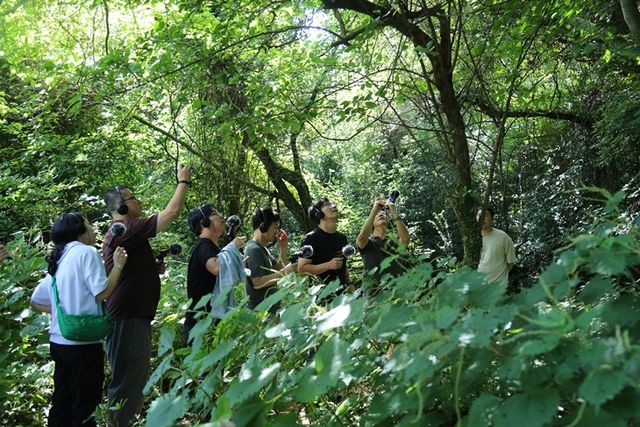 15일 스타트업 비즈투어 프로그램을 통해 화순 곶자왈에서 \'사운드 워킹\'을 체험하는 참가자들. 제주관광공사 제공
