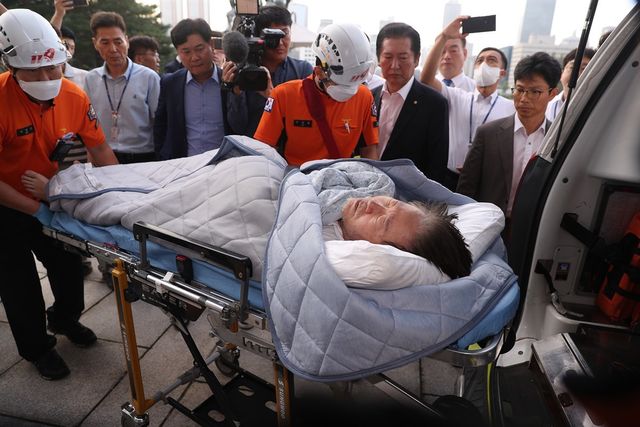 민주당은 전날에도 의료진 권고로 119를 불러 이 대표를 병원으로 이송하려 했지만 이 대표의 완강한 반대로 실패했다. 하지만 이날 오전 상태가 다시 악화되면서 결국 이송을 결정했다.