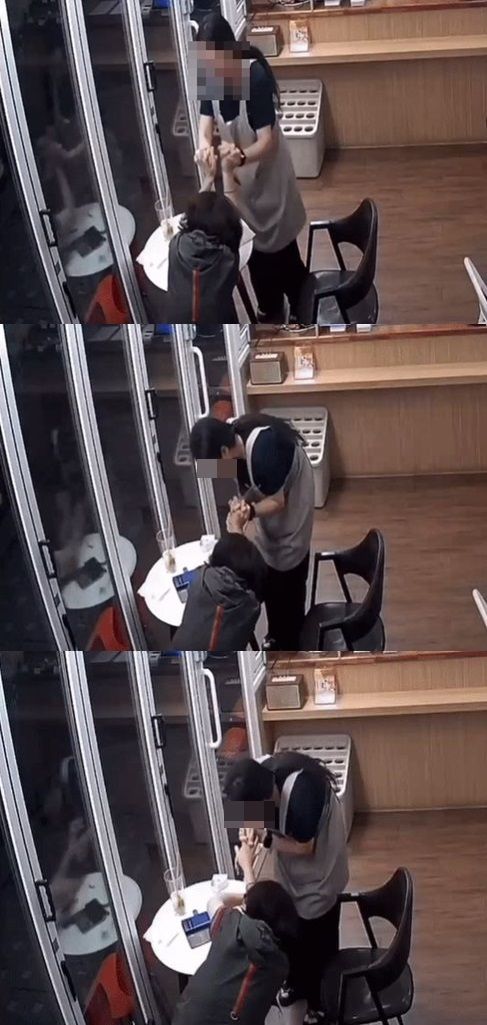 공개된 영상 속 A씨는 손님과 함께 스마트폰을 들여다보고 있다가, 이내 두 사람이 손을 맞잡고 환호성을 지르며 기뻐하는 모습이다.