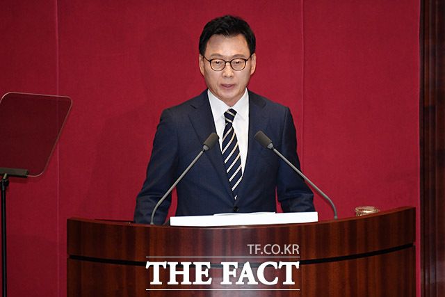 박 원내대표가 18일 오전 서울 여의도 국회에서 열린 본회의에서 교섭단체 대표연설을 하고 있다. /국회=남용희 기자