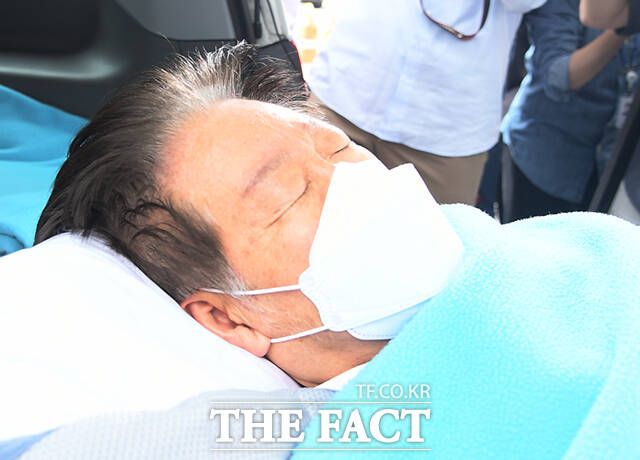 무기한 단식을 벌이던 이재명 더불어민주당 대표가 건강 악화로 18일 오전 서울 여의도 성모병원 응급실에 긴급 이송, 치료를 위해 녹색병원으로 이동하고 있다. 대통령실의 국정 쇄신과 개각 등을 요구하며 단식에 들어간 지 19일 만이다./이새롬 기자