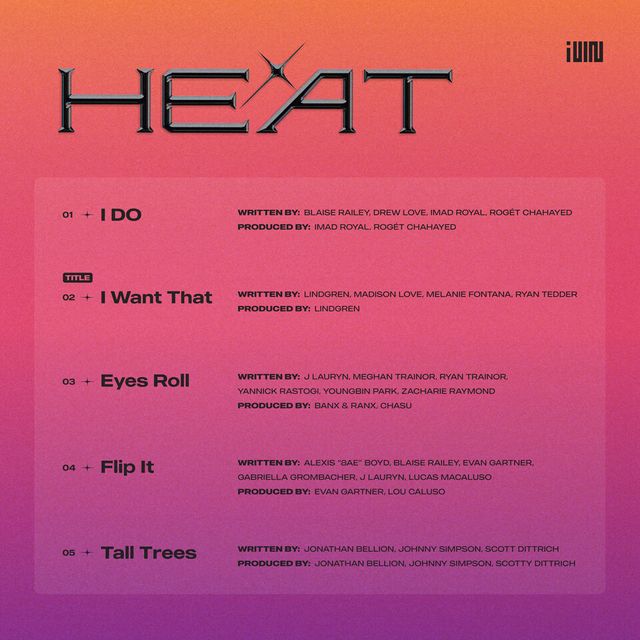 ‘HEAT’는 (여자)아이들의 첫 영어 전곡 앨범으로 활기 넘치는 팝 에너지가 가득 담긴 5곡이 담겨있어 해외 팬들의 마음을 사로잡을 예정이다.