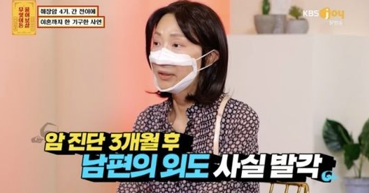 KBS Joy '무엇이든 물어보살' 233회에서 췌장암 4기 판정을 받은 사연자가 남편의 외도 사실을 알게 되며 충격을 받고 외도 증거를 수집한 사연을 전달합니다.