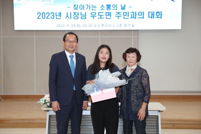 [파이낸셜경제=김영란 기자] 강병삼 제주시장은 9월 19일 우도면사무소에서 제주 최연소 해녀 임혜인(22세) 씨에게 해녀복을 증정했다.