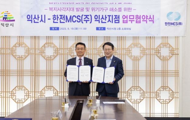 시는 19일 시청 소회의실에서 한전MCS(주) 익산지점과 ‘우리 마을 행복지킴이’ 업무협약을 체결하고, 복지사각지대 제로화에 나섰다.