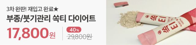이 때문인지 최근 한 포 뜯어 물에 타 먹으면 동일한 팥물 다이어트 효과를 볼 수 있다며 입소문 난 제품 하나가 눈길을 끌고 있다. 다리부종, 얼굴 붓기, 셀룰라이트 완화에 직빵이라는 '쏙티 다이어트' 스틱이다. (바로가기)