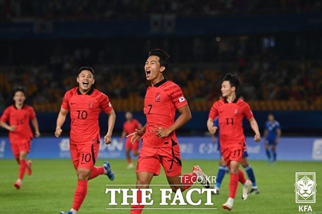 황선홍 감독이 이끄는 한국 아시안게임 대표팀(U-23)은 19일 쿠웨이트와 E조 1차전에서 정영우의 해트트릭과 조영욱의 '멀티골' 등을 앞세워 9-0 대승을 거두며 힘차게 출발했다. 이강인은 24일 열리는 바레인과 3차전부터 출격 대기를 할 것으로 보인다.