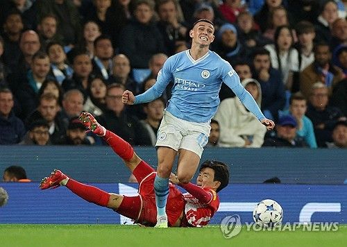 이어 전반 24분엔 로드리가 볼을 잡았을 때 황인범이 태클로 걷어내 공격이 끊어졌다. 이어 1분 뒤인 전반 25분엔 필 포든의 크로스를 홀란이 골지역 왼쪽에서 헤더로 연결했으나 크로스바 맞고 나오면서 첫 골에 또 다시 실패했다.