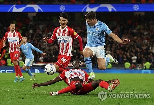 즈베즈다는 전반 45분 2선 공격수 오스만 부카리가 선제골을 넣어 맨시티를 침묵시켰으나 후반 2분과 15분 상대팀 아르헨티나 스트라이커 훌리안 알바레스에 동점포와 역전포를 연달아 내주더니 후반 28분 맨시티 '월클' 미드필더 로드리에 쐐기골까지 얻어맞고 1-3으로 패했다.