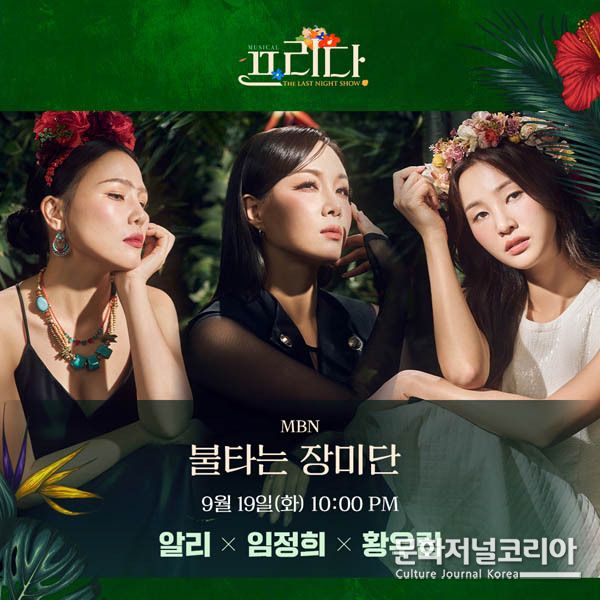 문화저널코리아 김영일 기자 | 뮤지컬 '프리다'에 출연 중인 알리, 임정희, 황우림이 오늘(19일) MBN '불타는 장미단'에 출연했다.
