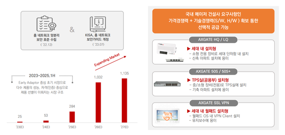 이미 홈 네트워크 보안 제품 양산을 마무리한 만큼, 공동가구 해킹방지를 위한 다양한 제품 포트폴리오와 함께 3년 내 시장 점유율을 빠르게 확대할 계획이다.