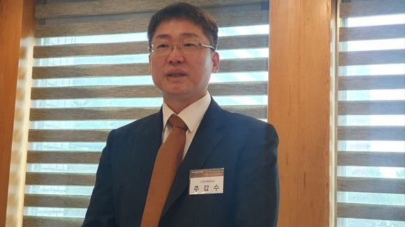 주갑수 엑스게이트 대표이사가 20일 여의도에서 열린 기자간담회에서 인사말을 하고 있는 모습. = 박기훈 기자