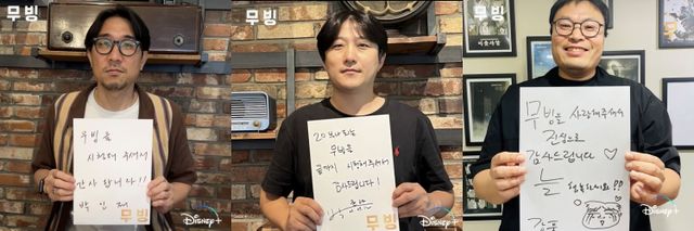 디즈니+ 드라마 '무빙' 연출을 맡은 (왼쪽부터) 박인제, 박윤서 감독과 원작자인 웹툰 작가 강풀의 종영 소감 / 디즈니+ 공식 인스타그램