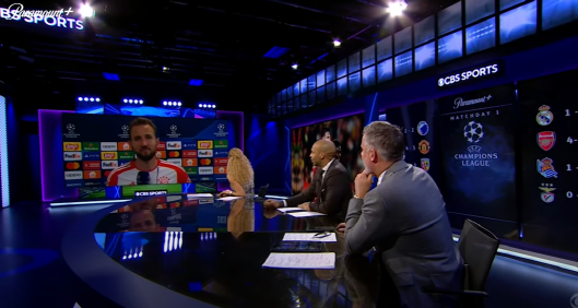 케인은 이후 미국에서 챔피언스리그를 중계하는 'CBS 스포츠'와 방송 인터뷰를 했는데 같은 회사 동영상 채널 'CBS 스포츠 골라쪼(CBS Sports Golazo)'가 같은 날 뮌헨-맨유전 뒤 화상 인터뷰 영상을 공개했다. 아스널 역대 최다 득점자 앙리와 리버풀 '원클럽맨' 캐러거가 케인과 대화하기 위해 앞에 섰다.