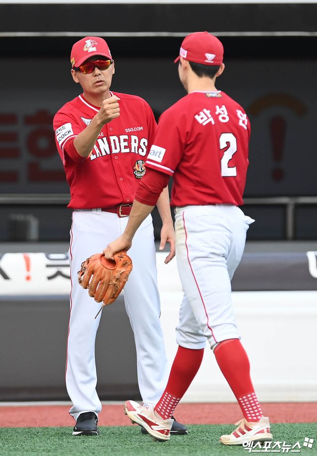 김 감독은 "대충 돌아오는 시점을 볼 때 10월 10일이고 그 선수들이 잔여경기 3경기를 나갈 수 있다고 하면 15경기 동안 유격수 자리를 채워야 한다"라며 "외야는 충분히 있는 선수들이 최지훈의 자리를 메울 수 있고 또 김성현이 경기에 나서긴 하지만, 박성한의 자리가 조금 걱정이다"고 전했다.