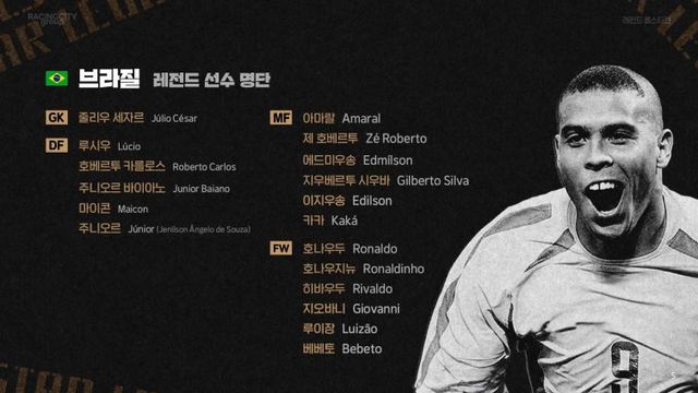 브라질 레전드의 면면도 화려하다. 2002 한일 월드컵 우승의 주역이었던 호나우두, 호나우지뉴, 질베르투 실바, 호베르투 카를루스가 명단에 오르며 관심을 모았다. 이외에도 AC 밀란과 레알 마드리드에서 활약한 카카, 인터 밀란 트레블의 주역 마이콘 등 세계적으로 이름을 날렸던 선수들이 레전드 올스타전에 출전할 예정이다.