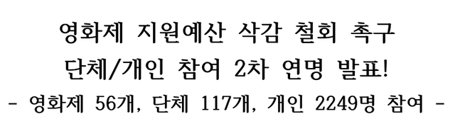 영화제연대, 영화제 지원예산 삭감 철회 촉구 단체·개인 참여 2차 연명 발표!