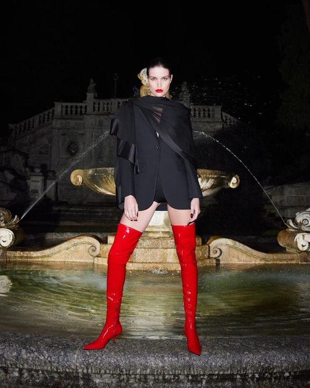불꽃처럼 화려한 순간의 주인공이고 싶다면, 과감한 선택을 해보자. 올 블랙 룩에 무릎 위로 올라오는 강렬한 레드 컬러의 사이하이 부츠를 매치하는 것. 화려한 조명을 반사하는 레드의 도발적 매력이 모든 이의 눈길을 사로잡으며 완벽한 글래머러스 룩을 연출해줄 테니까.