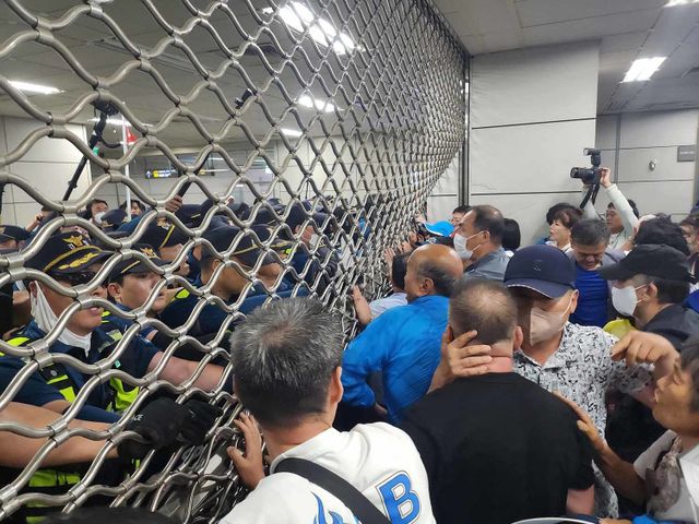 21일 더불어민주당 이재명 대표 체포동의안이 가결되자 지지자들이 국회 진입을 시도했다. 경찰은 지하철 9호선 국회의사당역 1번·6번 출구를 폐쇄했다. 경찰과 서울메트로 9호선은 이날 오후 국회 정문 인근 국회의사당역 1번·6번 출구에 경찰관 등 인력을 배치해 국회 방향 진출을 차단하고 있다. / 뉴스1