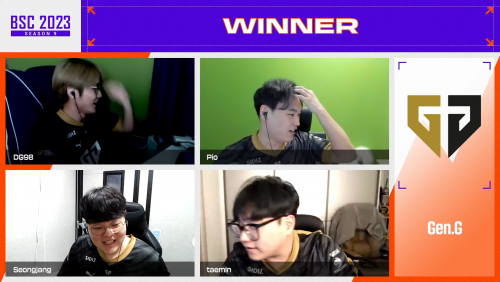 젠지는 차량 뒤에 매복해 침착한 플레이를 유지했고, 끝까지 저항한 다나와를 잡아먹으며 BSC 우승을 차지했다.