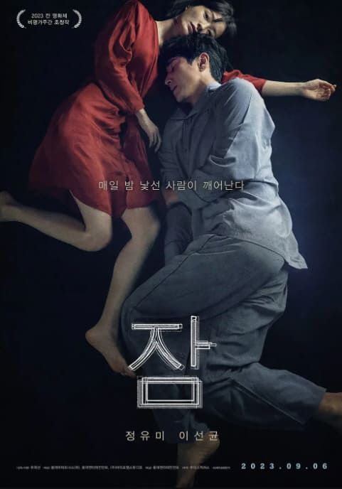'잠'은 행복한 신혼부부 현수(이선균)와 수진(정유미)을 악몽처럼 덮친 남편 현수의 수면 중 이상행동, 잠드는 순간 시작되는 끔찍한 공포의 비밀을 풀기 위해 애쓰는 두 사람의 이야기를 그린 영화입니다.