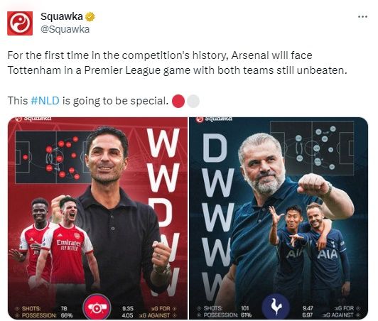 아르테타 감독도 포스테코글루 감독처럼 승리를 정조준했다. 그는 "승리는 항상 좋은 위치에서 정신을 유지하는 데 도움을 주며, 이 경기에 동기 부여는 필요하지 않는다"라며 "이번 시즌 가장 특별한 경기인 더비는 우리 모두에게 특별한 순간이기에, 우린 여기에만 집중해야 한다"라고 주장했다.