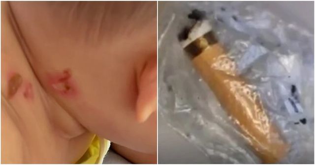 화상을 입은 4개월 아기와 담배꽁초 / 웨이보