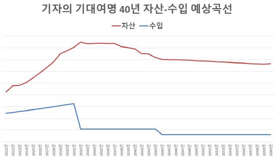 어쨌든 2년 전(2021년) 이 계획을 세웠습니다. 당시 적다고 할 순 없는 나이에 아이가 커가니 덜컥 걱정이 들었습니다. 평범한 능력으로 끝까지 현 생활 수준을 유지하는 게 가능한 건지 한번 계산해볼 필요가 있었습니다. 때마침 정부가 1년 전(2020년) 2060년까지 40년에 걸친 장기재정전망을 발표했고, 이를 참조했습니다. 저만의 ‘장기재정전망’인 셈입니다.