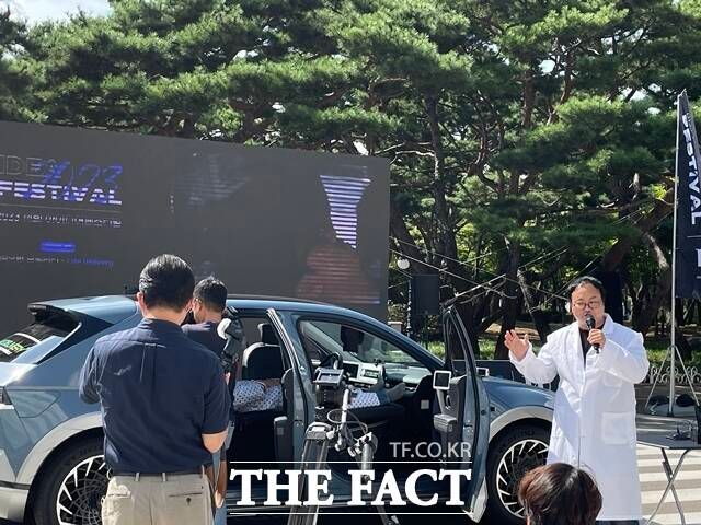 경기 화성 남양연구소에서 열린 '2023 아이디어 페스티벌' 본선에 '심오헌모빌리티팀'이 'life delivery' 서비스 시연을 하고 있다. /이윤경 인턴기자