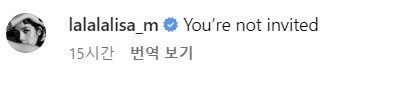리사는 지난 23일 자신의 SNS에 'You´re not invited'(당신은 초대되지 않았습니다)라는 의미심장한 문장과 함께 여러 장의 사진을 업로드했다.