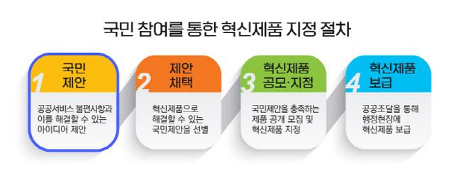 우수 아이디어는 조달청과 협업해 실제 제품화가 가능하도록 보완하고, 개발된 제품은 아이디어 제안자가 살고 있는 동네에 우선 보급되도록 정부가 첫 구매를 지원할 계획이다.