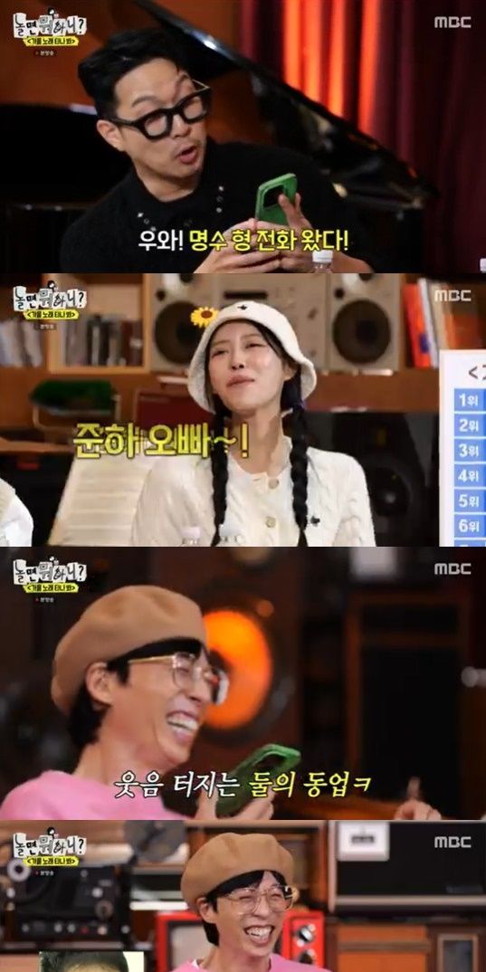 뉴스1에 따르면 23일 오후 방송된 MBC '놀면 뭐하니?'에서 하하는 녹화 도중 박명수에게 전화가 오자 양해를 구하고 받았다.