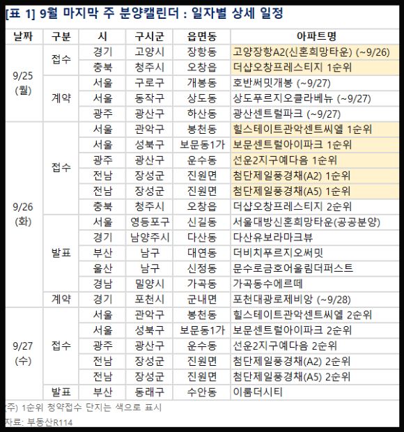 24일 부동산R114에 따르면 이달 마지막 주에는 전국 6개 단지, 총 5194가구(일반분양 4027가구)가 분양을 시작한다.