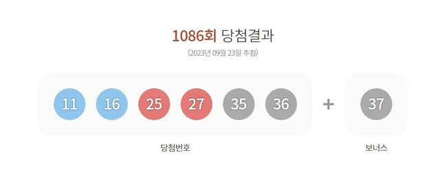 지난 23일 진행된 제1086회 로또복권 추첨에서 당첨 번호 '11, 16, 25, 27, 35, 36'를 모두 맞힌 1등 당첨자는 총 17명으로 각 15억 1591만 원씩 받는다.