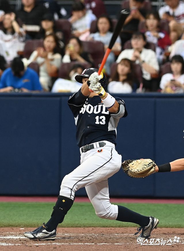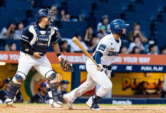 이승엽 두산 감독의 신뢰를 한몸에 받는 '좌타거포' 김재환도 힘을 보탰다. 6회초 선두타자로 나와 NC 두 번째 투수 한재승의 4구째 슬라이더를 그대로 잡아당겨 오른쪽 담장을 넘어가는 큼지막한 솔로 아치를 그렸다. 지난달 9일 잠실 삼성 라이온즈전 이후 46일 만에 홈런이 터졌다.