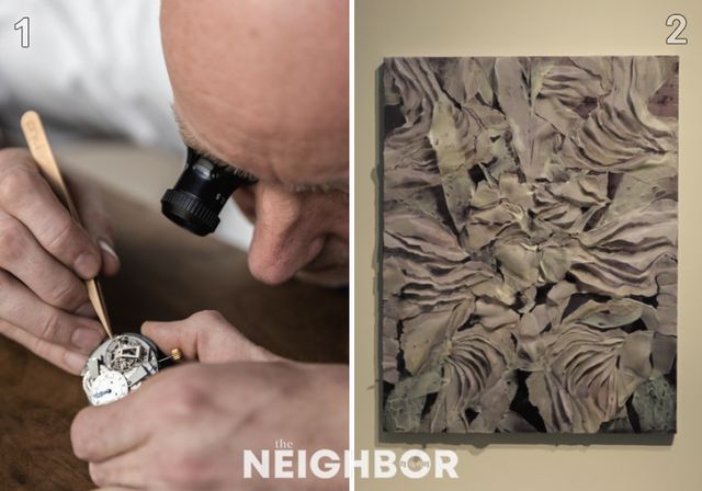 1 브레게의 워치메이커. 2 정희민, ‘부서진 배 위의 세이렌 아네모이아 4’, 2023, 캔버스에 아크릴, 잉크젯을 전사한 젤 미디엄, UV 프린트, 117×91cm. 브레게&프리즈 커미션 제작.