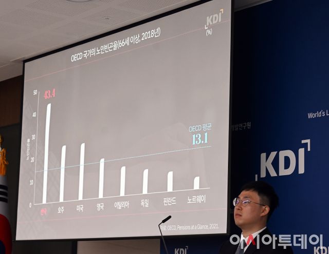아시아투데이(세종) 박성일 기자 = 이승희 KDI 재정·사회정책연구부 연구위원이 25일 오전 세종시 정부세종청사 중앙동 브리핑룸에서 '소득과 자산으로 진단한 노인빈곤과 정책 방향'에 대해 모니터 브리핑을 하고 있다.