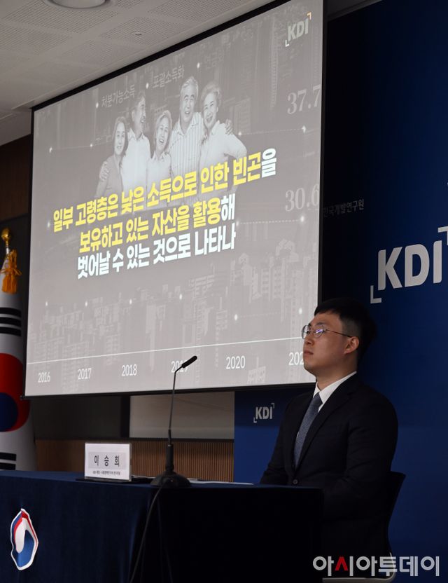 아시아투데이(세종) 박성일 기자 = 이승희 KDI 재정·사회정책연구부 연구위원이 25일 오전 세종시 정부세종청사 중앙동 브리핑룸에서 '소득과 자산으로 진단한 노인빈곤과 정책 방향'에 대해 모니터 브리핑을 하고 있다.