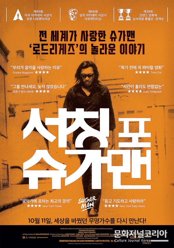 제28회 선댄스 영화제 심사위원 특별상과 관객상 수상을 시작으로 제66회 영국 아카데미 시상식, 전미 비평가위원회, 미국 갑독조합상에서도 수상의 기쁨을 안았던 '서칭 포 슈가맨'은 제85회 미국 아카데미 시상식 장편 다큐멘터리상을 수상하며 화려한 수상 릴레이의 정점을 찍었다.