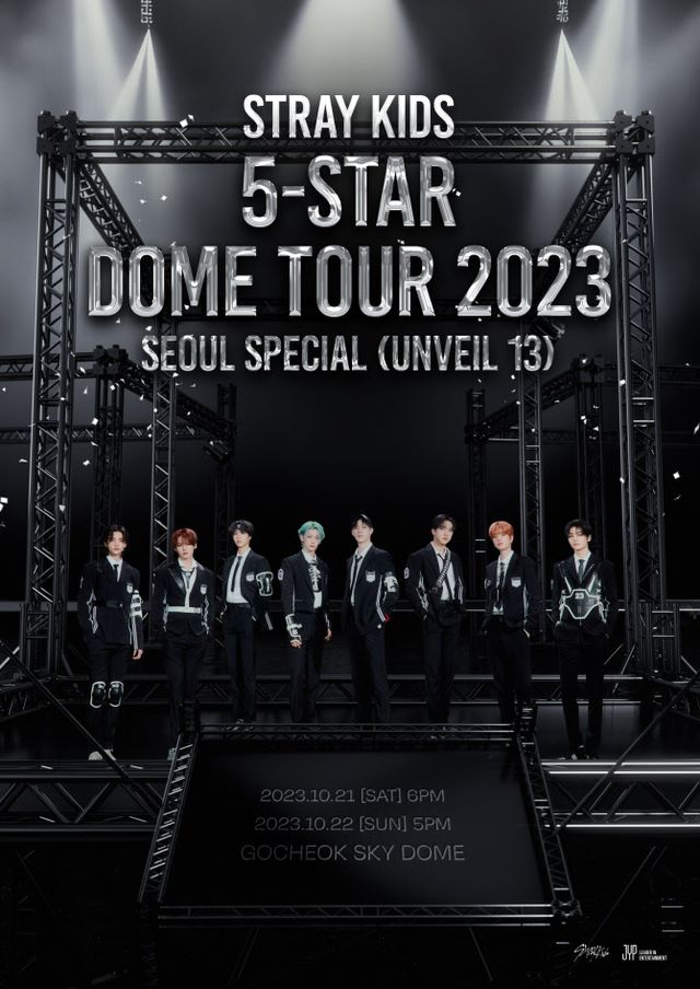 스트레이 키즈는 10월 21~22일 양일간 서울 구로구에 위치한 고척스카이돔에서 ‘파이브스타 돔 투어 2023 서울 스페셜 (언베일 13)’을 개최한다.