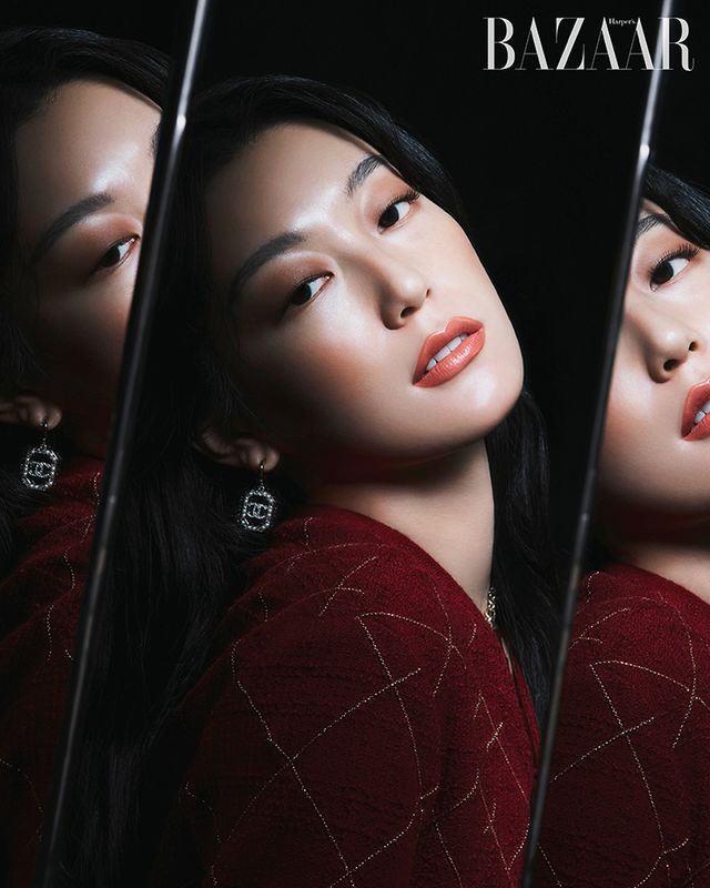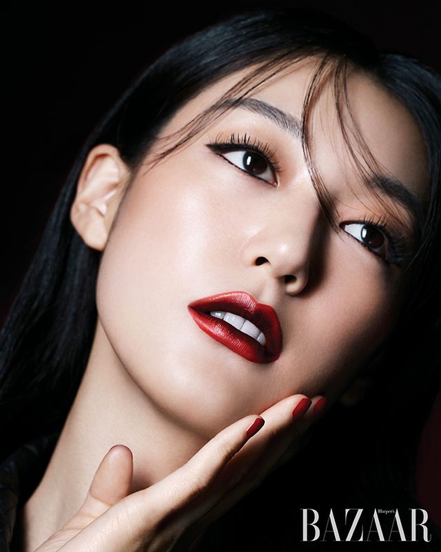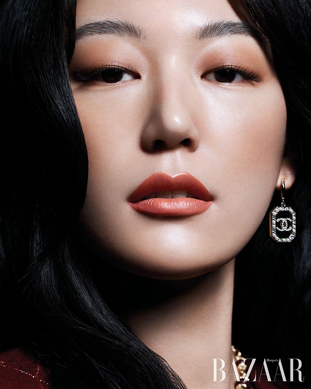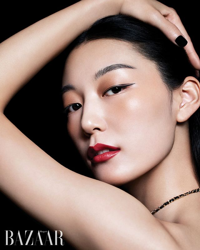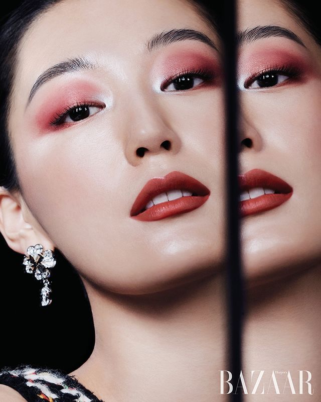 무결점 커버력의 ‘울트라 르 뗑’ 파운데이션으로 매끈한 피부를 표현한 다음 ‘르 볼륨 레볼루씨옹 드 샤넬’로 속눈썹 길이를 연장하고 끝을 뭉치듯 모아준다. 버밀리온 레드 컬러인 ‘31 LE ROUGE’ 루쥬 프리미에르를 입술 라인에 넓게 펴 바른 뒤 딥 레드 브라운의 ‘31 LE ROUGE’ 루쥬 꼬로망델을 안쪽에 입혀 투톤 립을 완성한다.