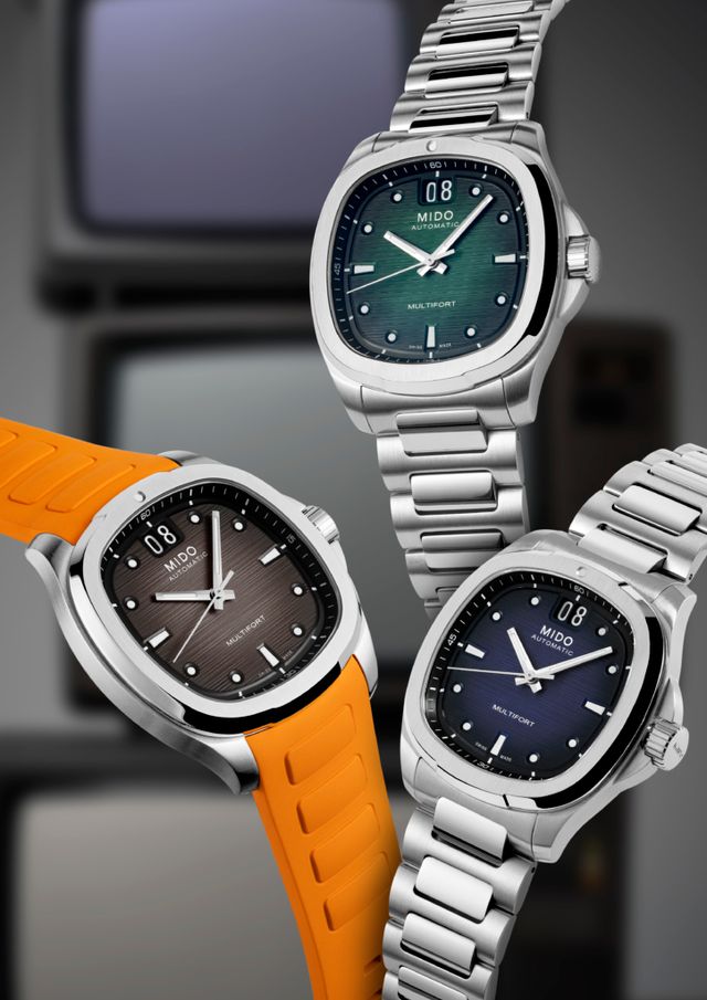 새로운 멀티포트 TV 빅 데이트는 1973 년에 공개한 사각형 TV 형태감으로 이목 을 끈 케이스 디자인을 현대적 관점으로 재해석했다. 39.2×40mm 콤팩트한 사 이즈의 배럴형 케이스에 12시 방향에 자 리한 브랜드의 시그너처 날짜 창이 눈길 을 끈다. 자체 개발한 칼리버 80은 80시 간의 파워리저브를 제공하며, 니바크론 (NivachronTM) 밸런스 스프링을 탑재해 충격이나 자기장으로부터 탁월한 내구성을 자랑한다. 스테인리스스틸 브레이슬릿과 네이비 블루・오렌지 컬러 러버 스트랩을 함께 출시하는 새로운 컬렉션은 총 다섯 가지 모델로 구성해 선택의 폭을 넓혔다.