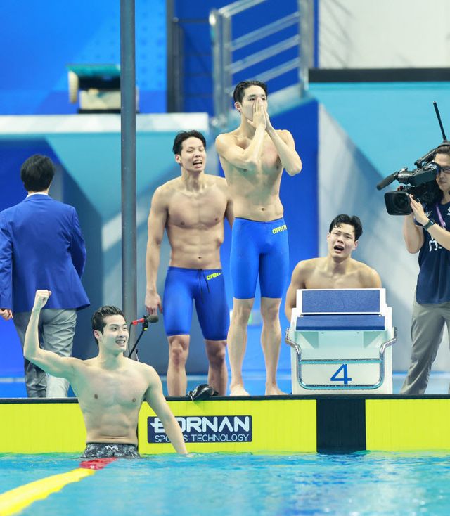 한국 수영이 단체전인 계영에서 아시안게임 금메달을 따낸 건 이번이 처음이다.
