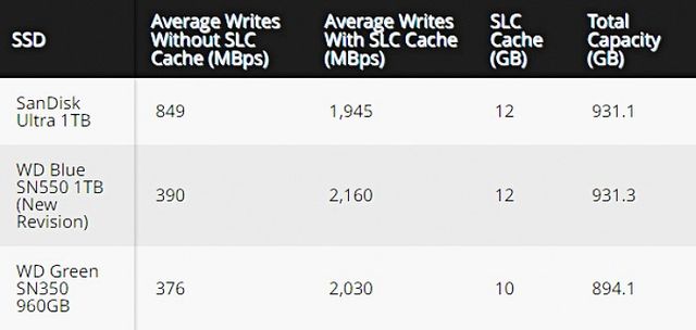 자, 그럼 WD가 어떤 사고를 쳤는지 알려줄게. 2021년 8월에 중급형 SSD인 SN550의 부품 사양을 몰래 낮춘 게 뒤늦게 드러났어. WD는 2021년 6월부터 SN550의 일부 사양을 변경했어. 기존 3D TLC 대신 3D QLC 방식 메모리를 탑재한 거야. 앞서 설명했듯이 QLC는 생산원가가 TLC보다 저렴하지만 그만큼 성능이 낮아. 때문에 해외매체인 톰스하드웨어 등에서 SN550의 성능이 이전보다 떨어졌다는 보도가 이어져. 평상시 읽고 쓰는 속도는 비슷한데 한꺼번에 많은 용량의 데이터를 저장하게 되면 쓰기 속도가 확 느려진다는 거야.