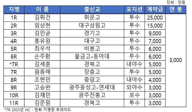 김휘건 2억5000만원…NC, 2024 신인선수 및 육성선수 계약 완료
