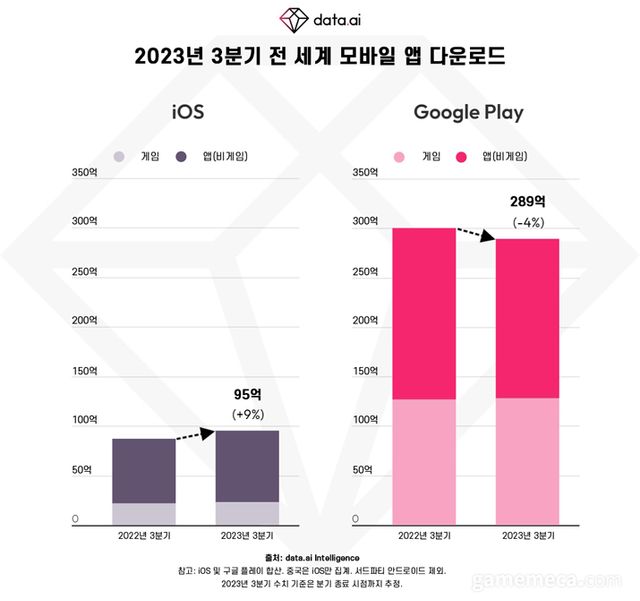 data.ai(구 앱애니)는 27일, 2023년 3분기 올해 누적 모바일 소비자 지출 및 다운로드 현황을 발표했다.