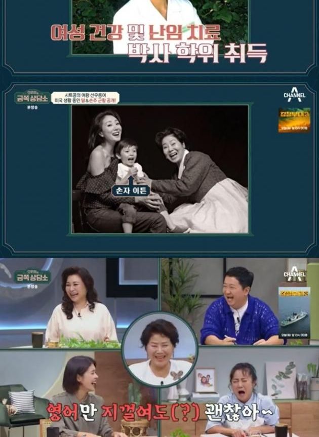 선우용여는 딸에 대해 "미국으로 건너가 (결혼하고) 난임 치료 박사 학위를 땄다. 45살에 학위를 받았고, 같은 해 2016년에 아들 낳아서 지금 손주가 8살이다"라고 알렸다.