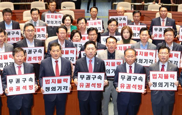 윤재옥 국민의힘 원내대표는 “법원의 판단이 순수하게 법리에 따른 결과가 아니라 민주당과 강성 지지층 압력에 굴복한 결과”라며 “정당의 현직 대표로서 공적 감시와 비판의 대상이기 때문에 증거인멸 염려가 없다고 판단한 부분은 귀를 의심하게 한다”고 지적했다.