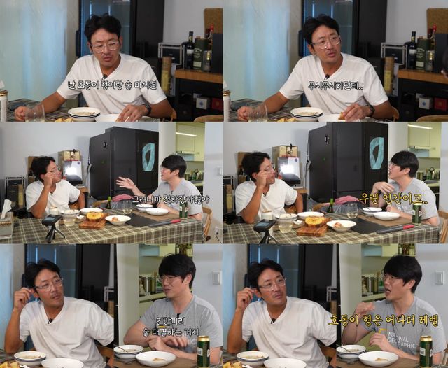 이에 하정우는 "나는 호동이 형이랑 술 마시면 무시무시하더라"라고 했고, 성시경은 "어릴 때 호동이 형 뒤에서 겨드랑이 밑에 몸을 잡아보면 다르더라. 그런 사람인 거다. 형은 천하장사고 우린 인간이다. 인간끼리 술 대결하는 거지 형은 어나더레벨이다"라고 이야기했다.