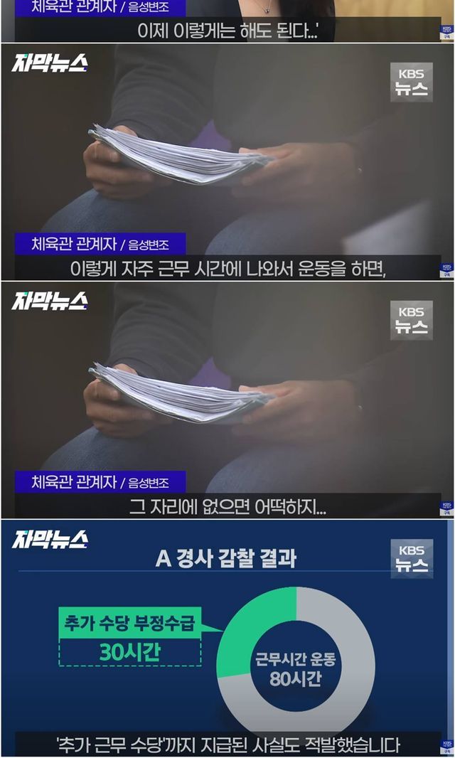 이를 통해 A 경사가 2년간 근무 시간 중 80시간 정도 체력 단련을 했으며 30시간에 대해서는 추가 근무 수당까지 지급된 증거를 발견했다.